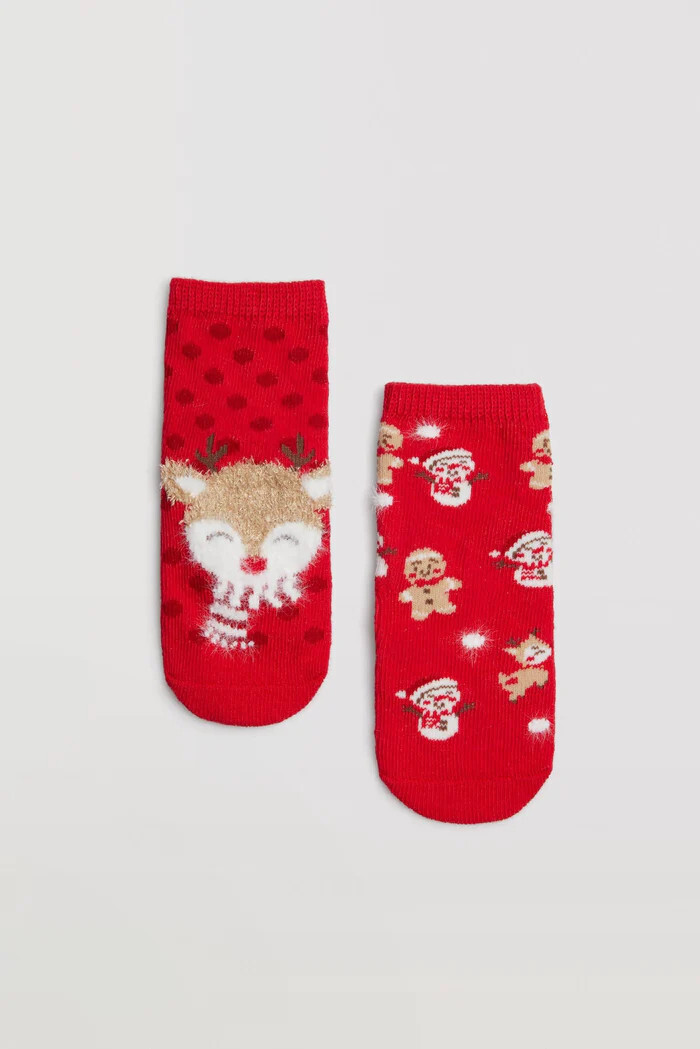2 Pack Ysabel Mora Κόκκινες Χριστουγεννιάτικες Παιδικές Κάλτσες.