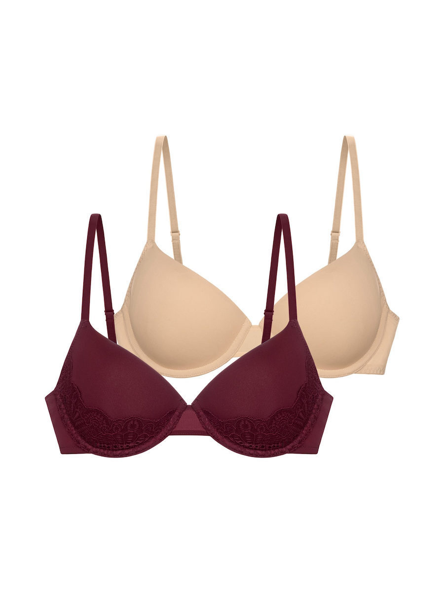 2Pack Dorina Lorena Bra Μπορντό/Μπεζ Με Μπανέλες & Ελαφριά Επένδυση.