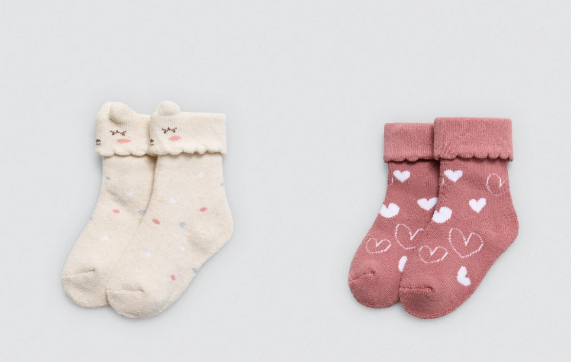 2Pack Ysabel Mora Βαμβακερές Πετσετέ Παιδικές Κάλτσες Εκρού/Σάπιο Μήλο.