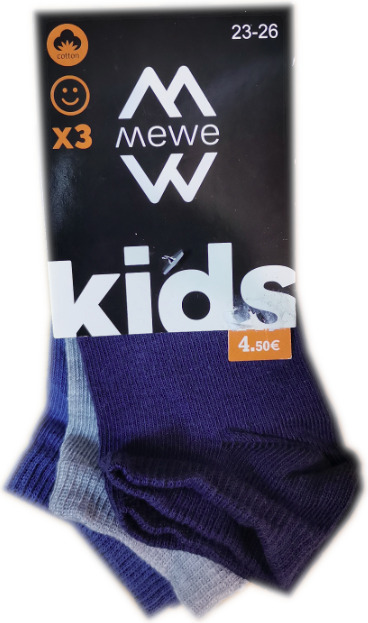 3 Pack MeWe παιδικές κοντές κάλτσες μπλε/γκρι/ραφ.