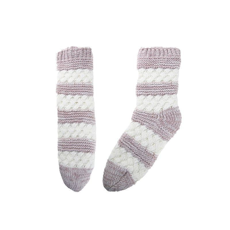 Ysabel Mora Fleece Χνουδωτές Γυναικείες Κάλτσες Ριγέ Ροζ/Μπεζ/Μπλε Με Βεντουζάκια Σιλικόνης. (Κωδ.: 12960)