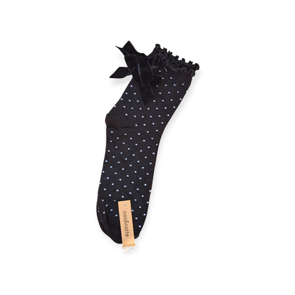Noidinotte Μαύρες Πουά Κάλτσες Με Φιόγκο Πίσω. (Κωδ.: TR1412-Pois Curly Black/White)