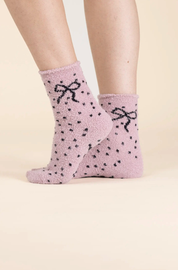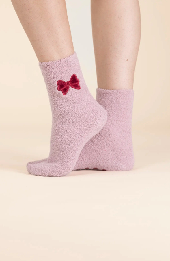 Noidinotte Μπορντό Fleece Κάλτσες Με Πατουσάκια Σιλικόνης Και Φιόγκο. (Κωδ.: TR1387- FIOCCO VICHY BORDEAUX)