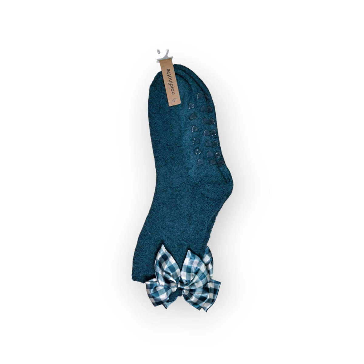 Noidinotte Πράσινες Fleece Κάλτσες Με Πατουσάκια Σιλικόνης Και Φιόγκο. (Κωδ.: TR1387- FIOCCO VICHY GREEN)