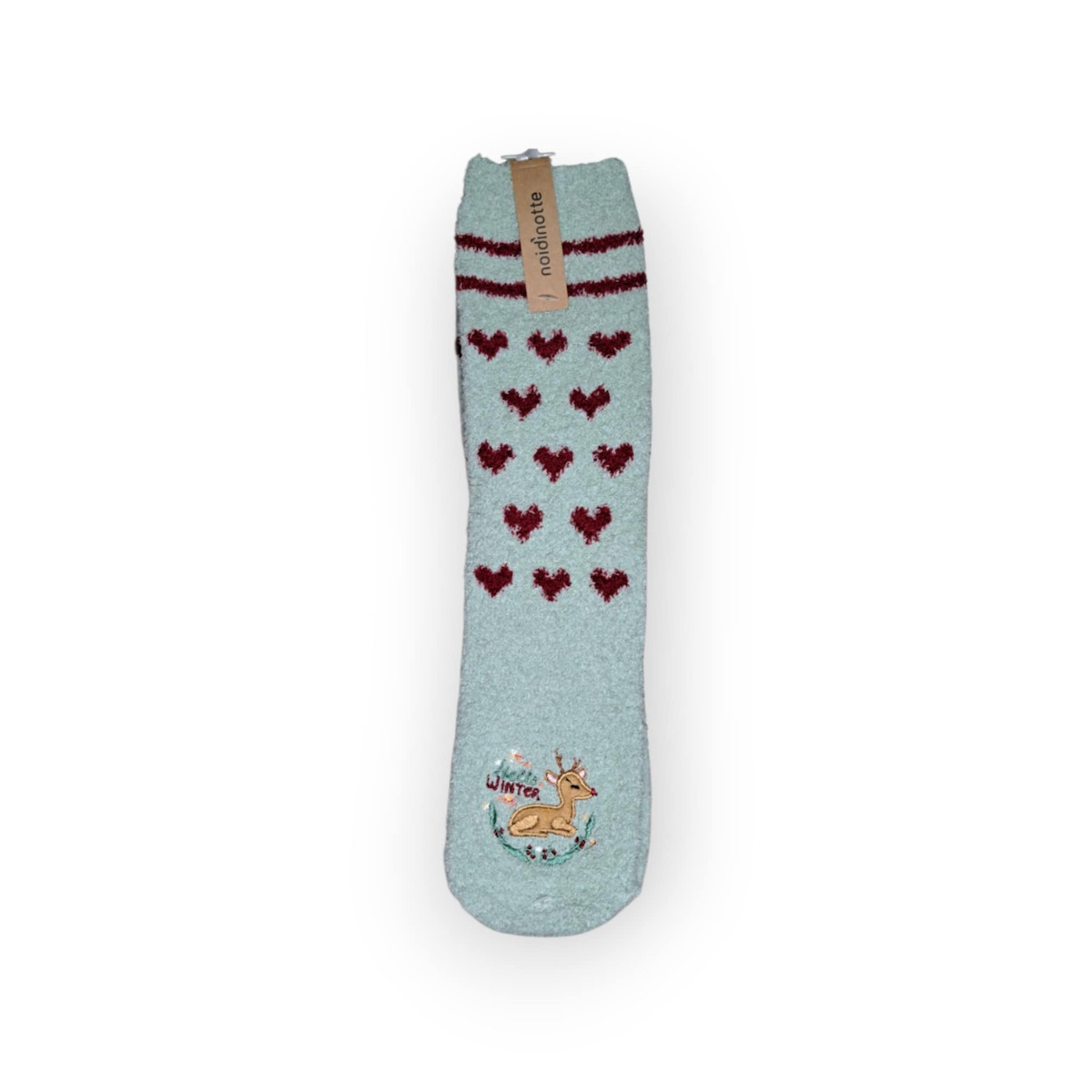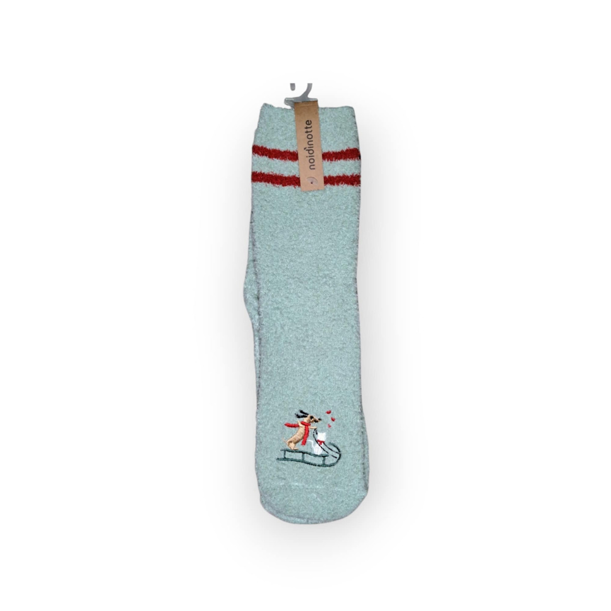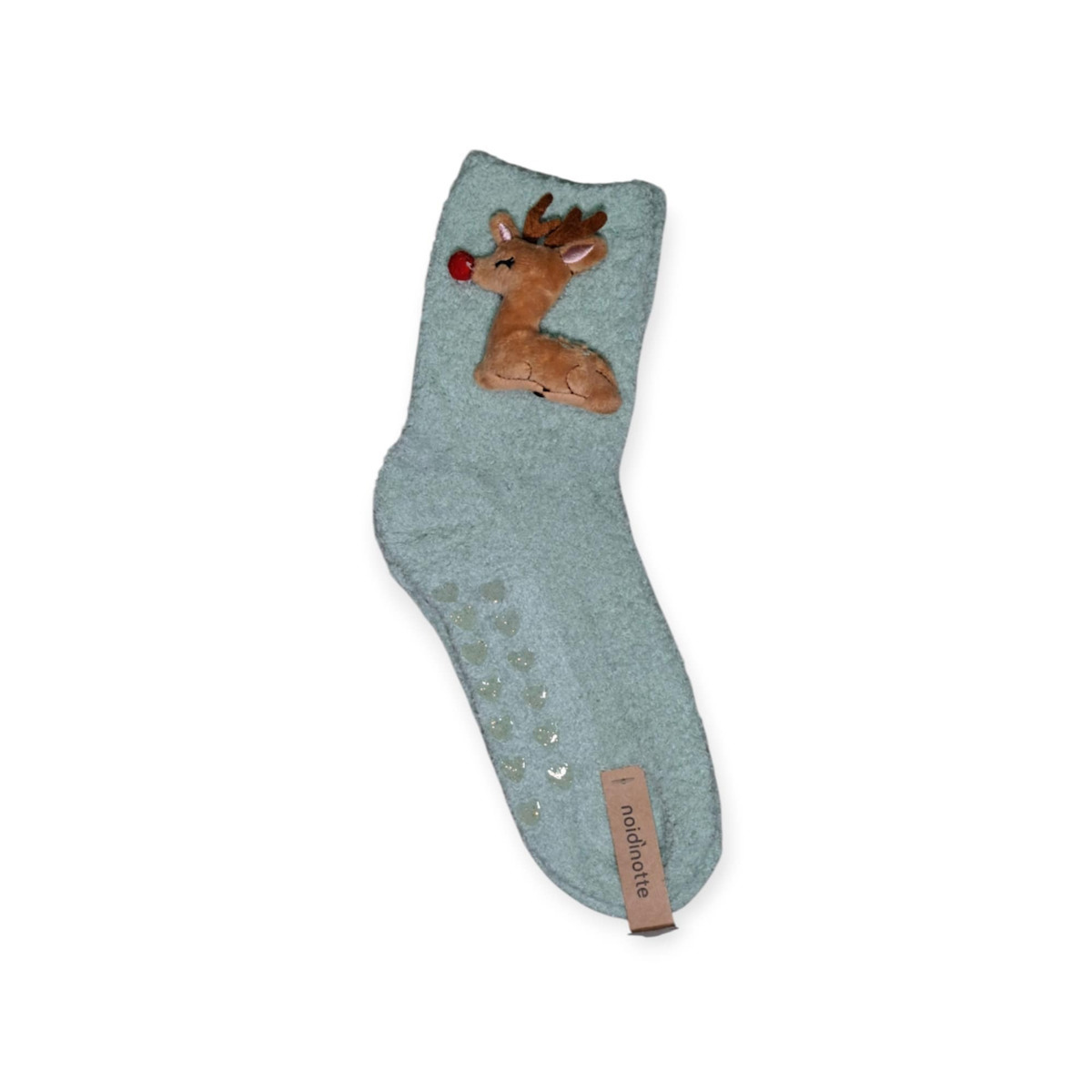Noidinotte Φυστικί Fleece Κάλτσες Με Πατουσάκια Σιλικόνης Και 3D Ελάφι. (Κωδ.: TR1387- ALCY 3D WATER GREEN)