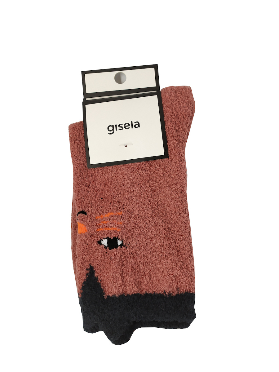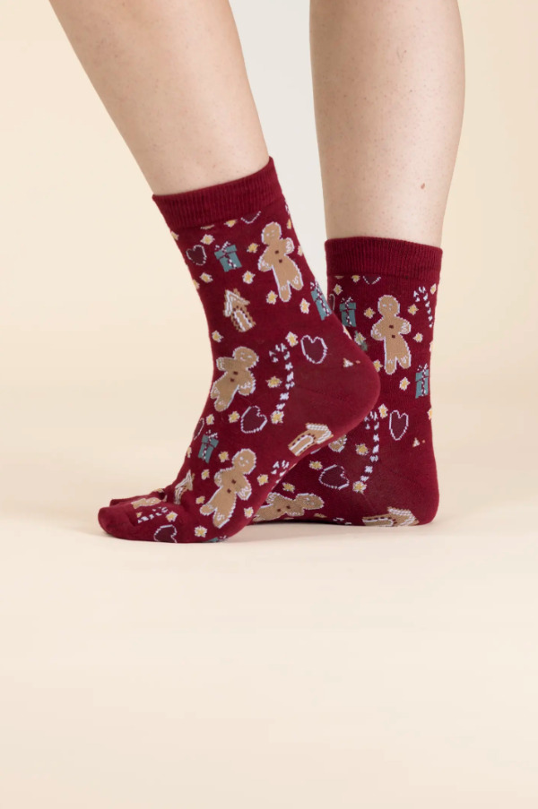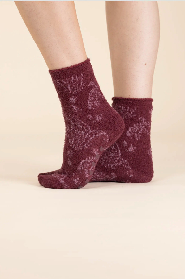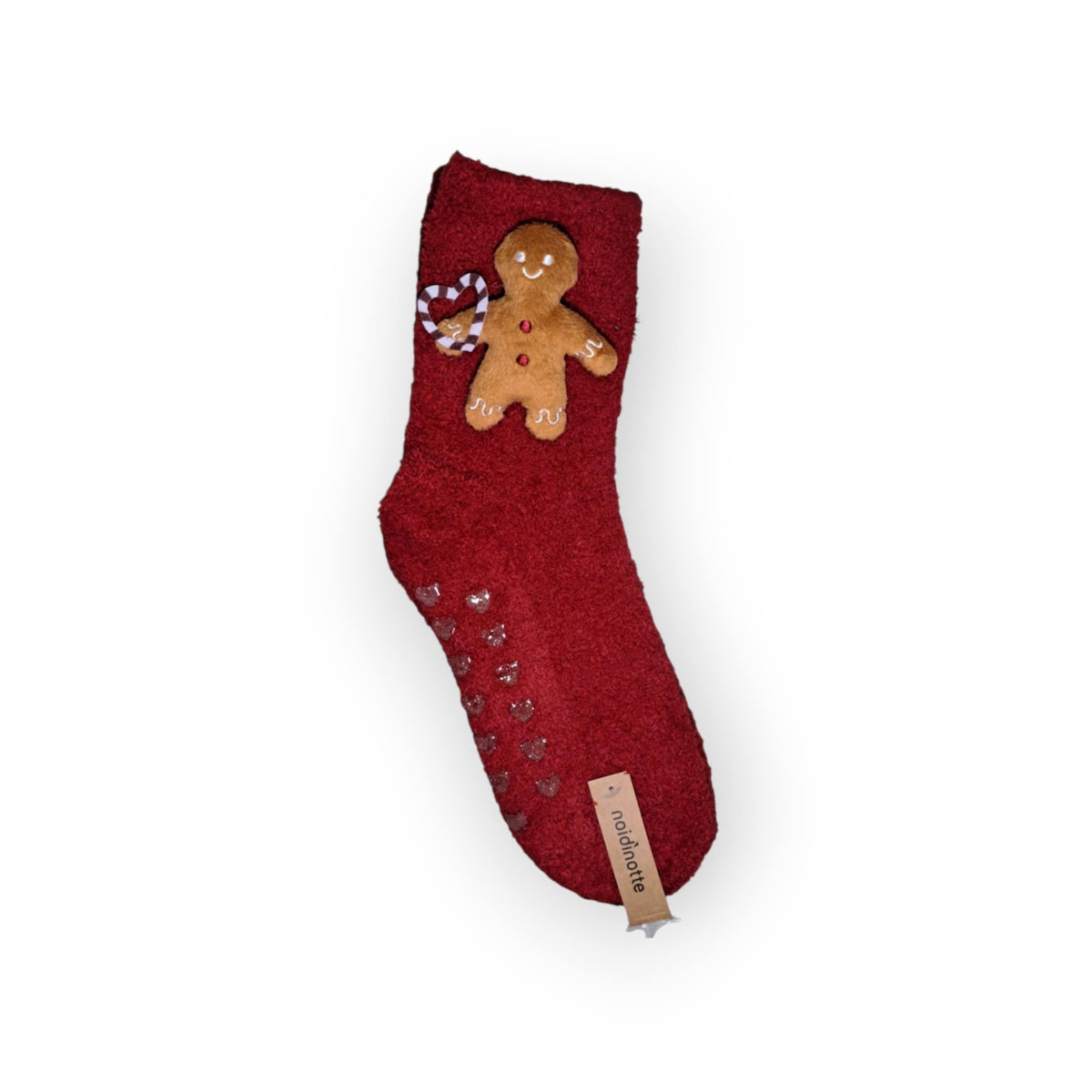 Noidinotte Μπορντό Fleece Κάλτσες Με Πατουσάκια Σιλικόνης Και 3D Μπισκότο. (Κωδ.: TR1387- ZENZI 3D BORDEUAX)