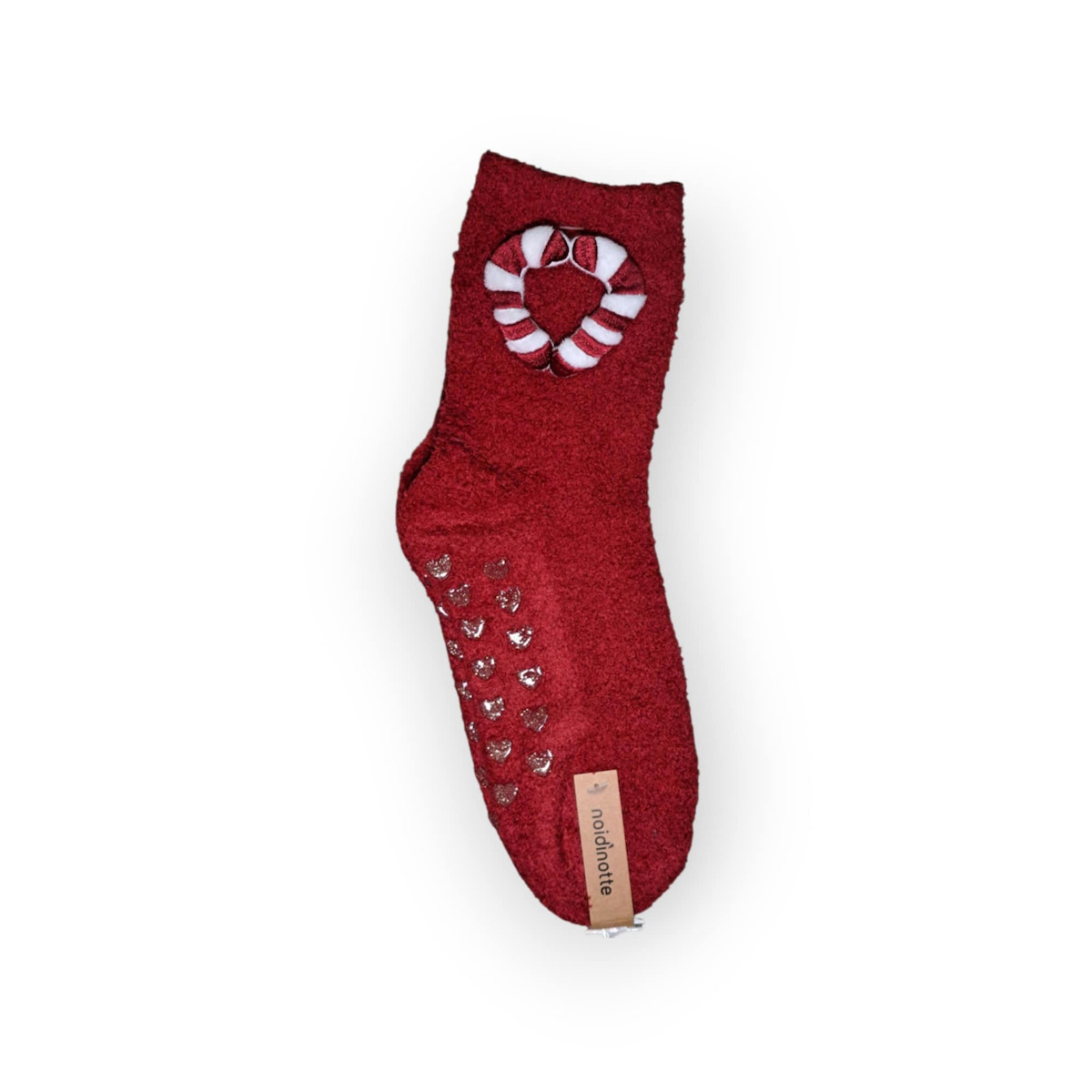 Noidinotte Μπορντό Fleece Κάλτσες Με Πατουσάκια Σιλικόνης Και 3D Candy. (Κωδ.: TR1387- CANDY 3D BORDEAUX)