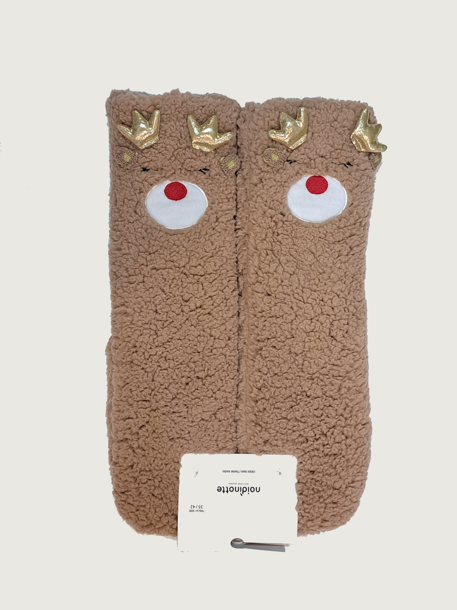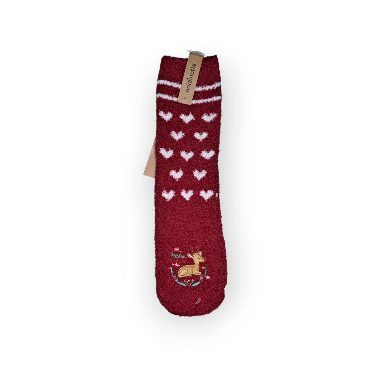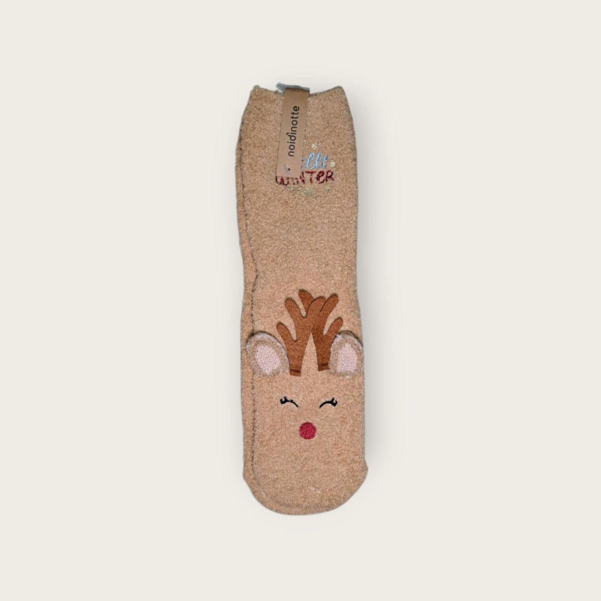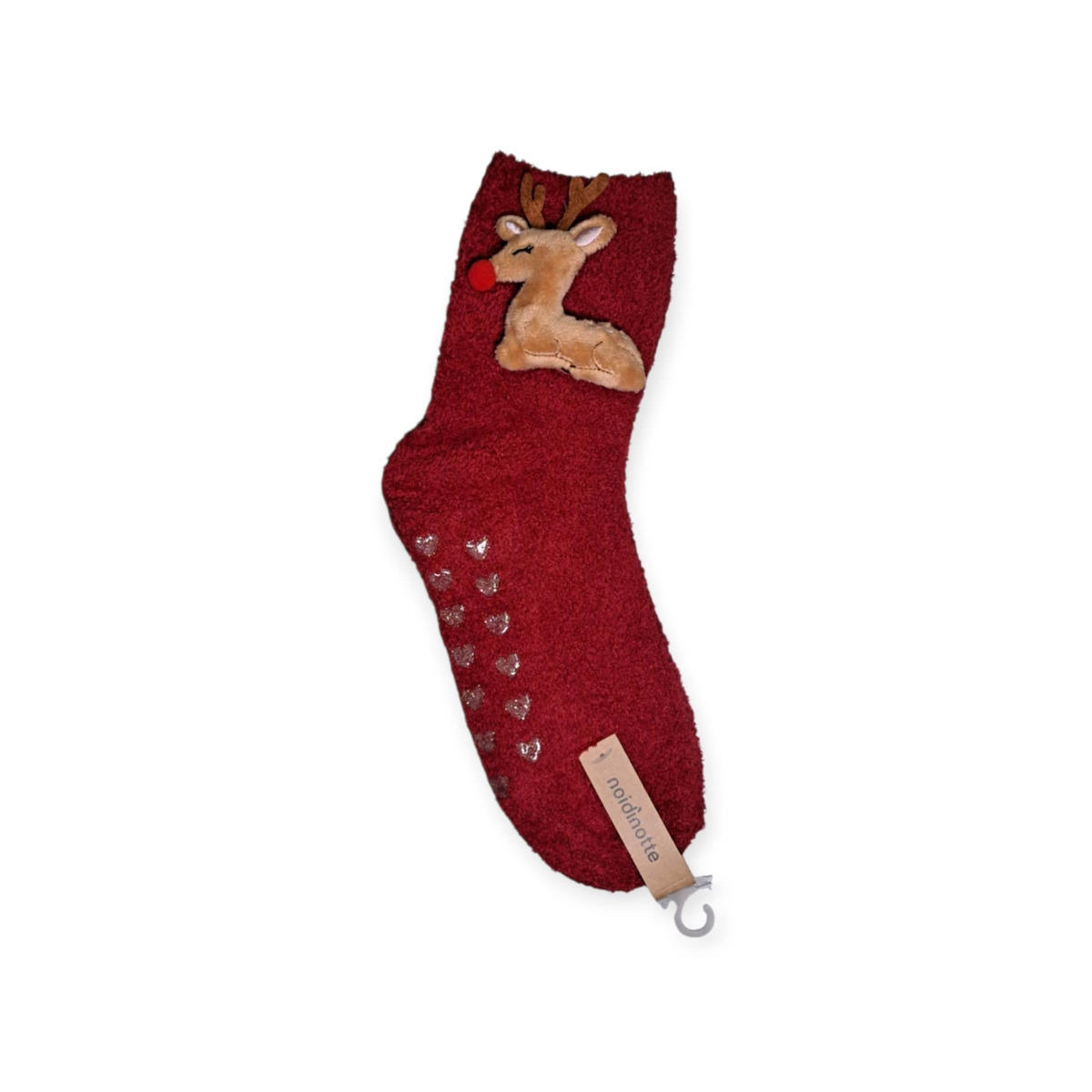 Noidinotte Μπορντό Fleece Κάλτσες Με Πατουσάκια Σιλικόνης Και 3D Ελάφι. (Κωδ.: TR1387- ALCY 3D BORDEAUX)