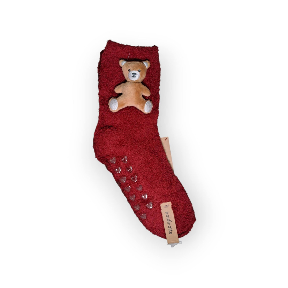 Noidinotte Μπορντό Fleece Κάλτσες Με Πατουσάκια Σιλικόνης Και 3D Αρκουδάκι. (Κωδ.: TR1387- BEAR 3D BORDEAUX)