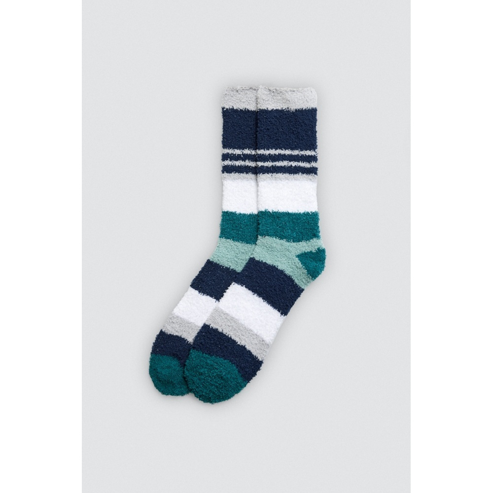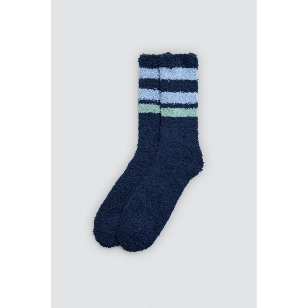 Ysabel Mora Fleece Χνουδωτές Γυναικείες Κάλτσες Ριγέ Μπλε Με Βεντουζάκια Σιλικόνης. (Κωδ.: 12960)