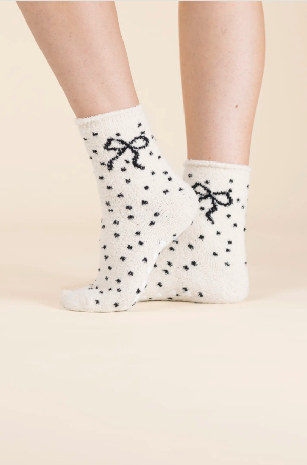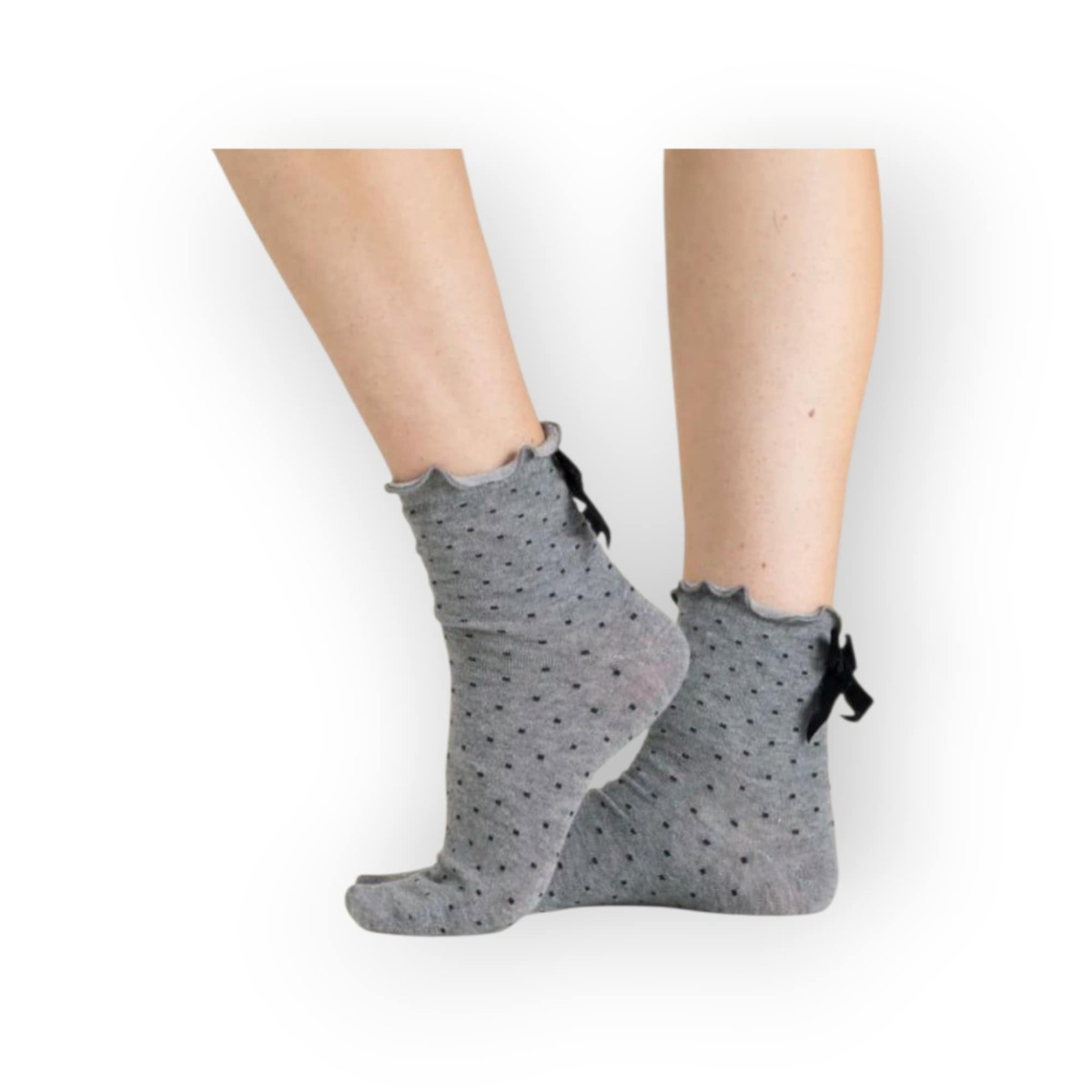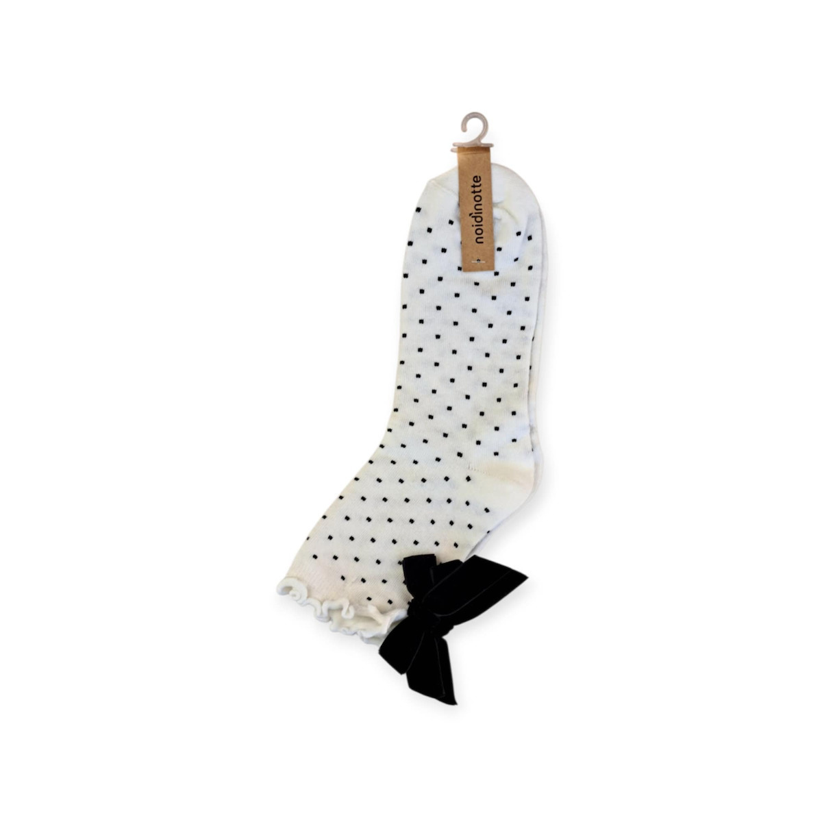 Noidinotte Λευκές Πουά Κάλτσες Με Φιόγκο Πίσω. (Κωδ.: TR1412-Pois Curly White/Black)