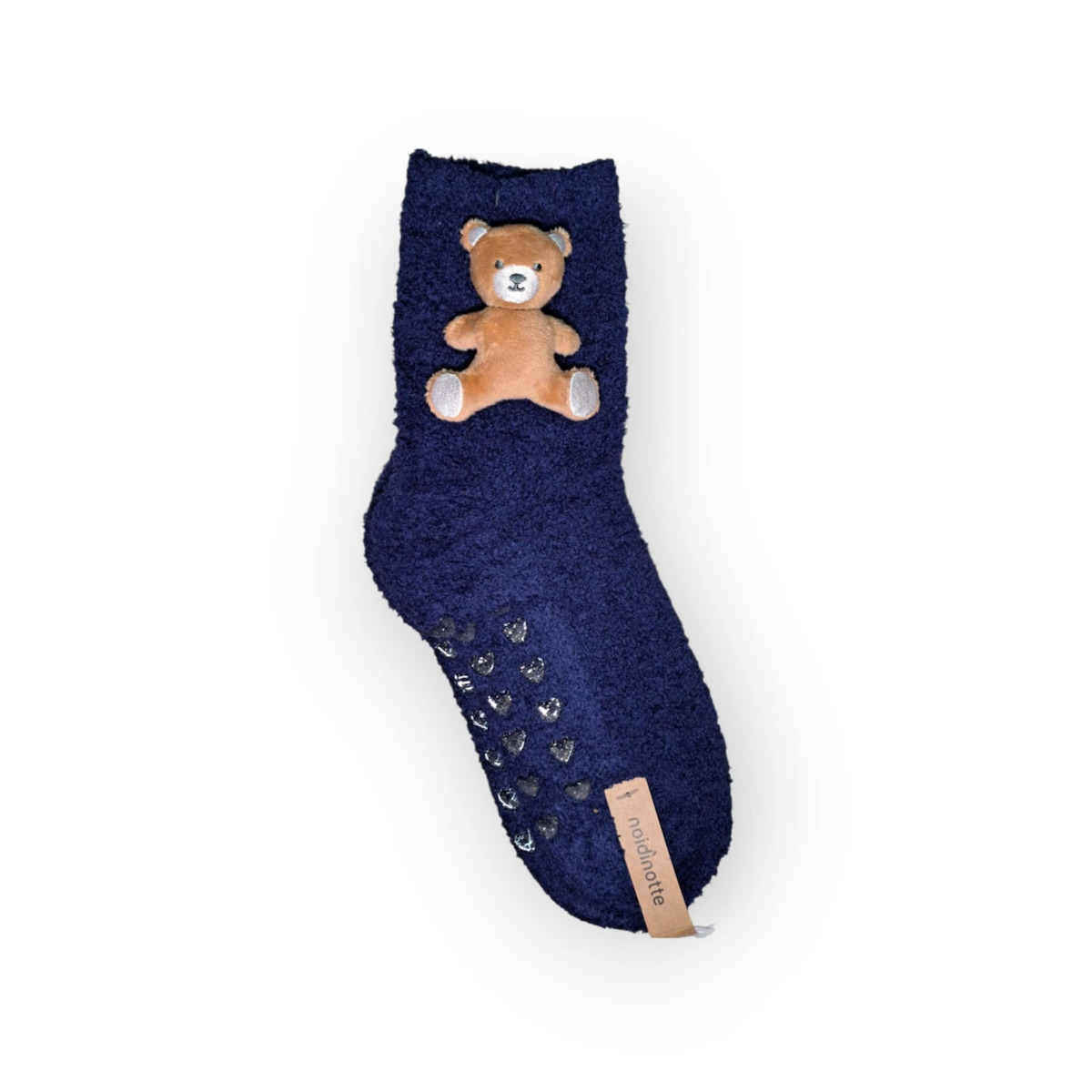 Noidinotte Μπλε Fleece Κάλτσες Με Πατουσάκια Σιλικόνης Και 3D Αρκουδάκι. (Κωδ.: TR1387- BEAR 3D BLUE)