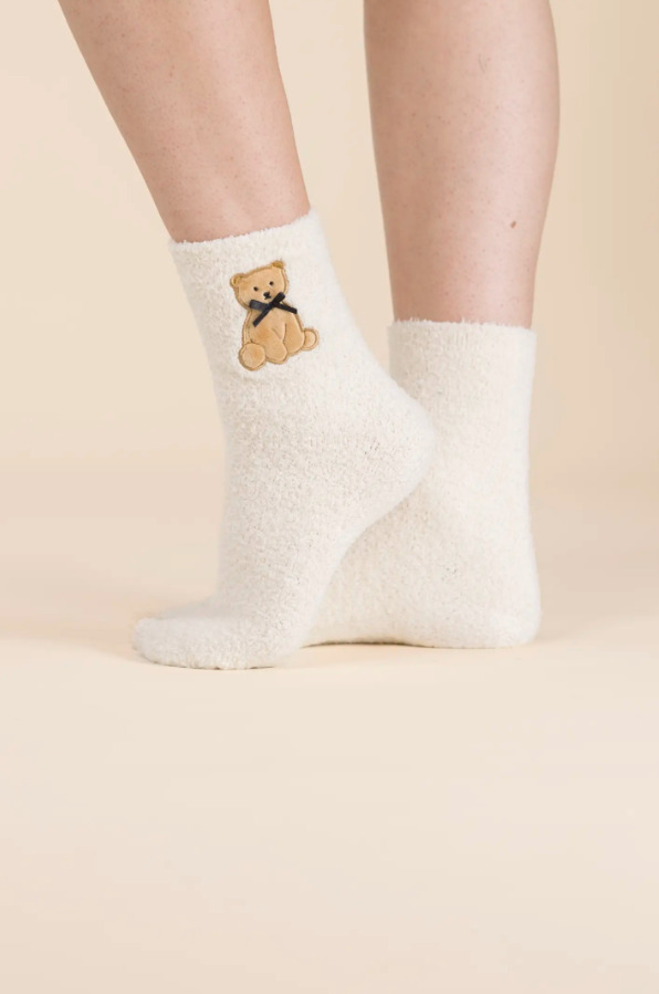 Noidinotte Εκρού Fleece Κάλτσες Με Πατουσάκια Σιλικόνης. (Κωδ.: TR1382- BOWBEAR NATURAL)