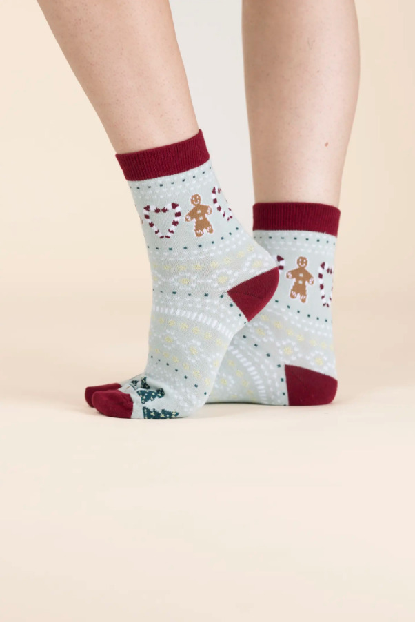 Noidinotte Unisex Φυστικί Κάλτσες Με Σχέδιο. (Κωδ.: TR1396- WINTER WATER GREEN)