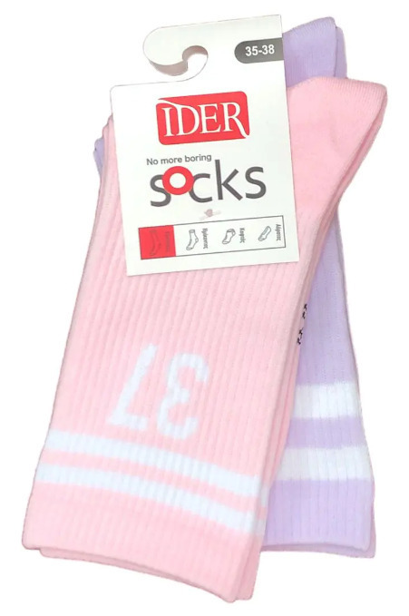 2Pack Ider Βαμβακερές Αθλητικές Κάλτσες Ροζ/Λιλά. (Κωδ.: 2115-2P)
