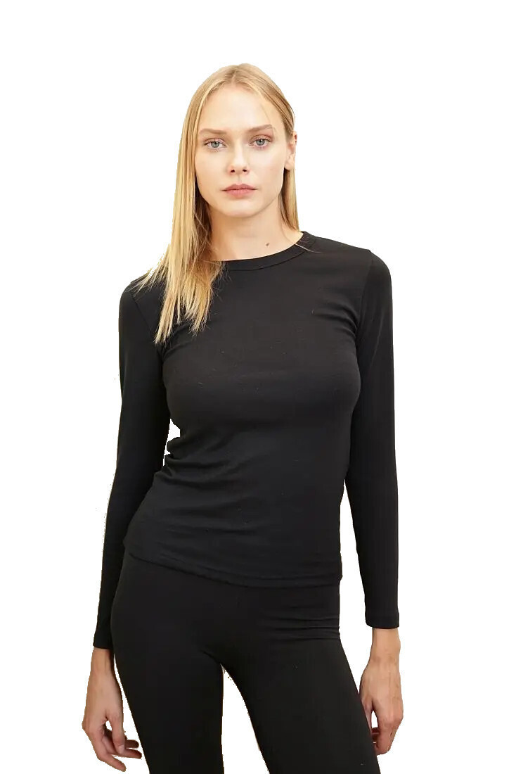 Ider μαύρη ισοθερμική γυναικεία μπλούζα μακρύ μανίκι, στρογγυλός λαιμός. (Κωδ.: 3710)