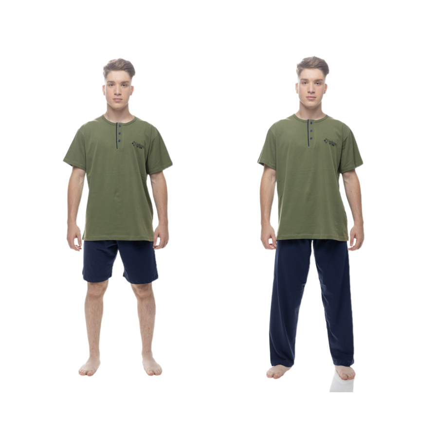 Ανδρική Καλοκαιρινή Πυτζάμα Δύο Παντελόνια Galaxy Χακί 714-25