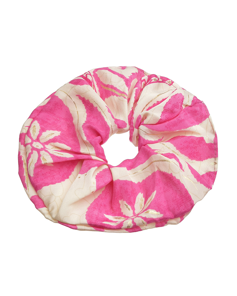Ble Scrunchie Εμπριμε Λουλουδια Λευκο Ροζ Χρυσες Λεπτομερειες Φ8χ2 5-49-348-0141