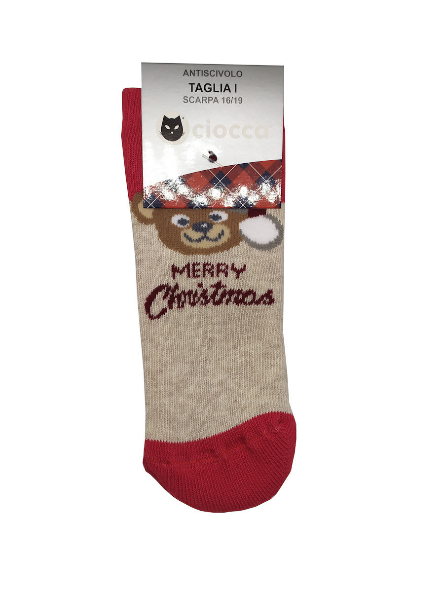Ciocca μπεζ/κόκκινη κάλτσα "Merry Christmas", με πατουσάκια σιλικόνης.