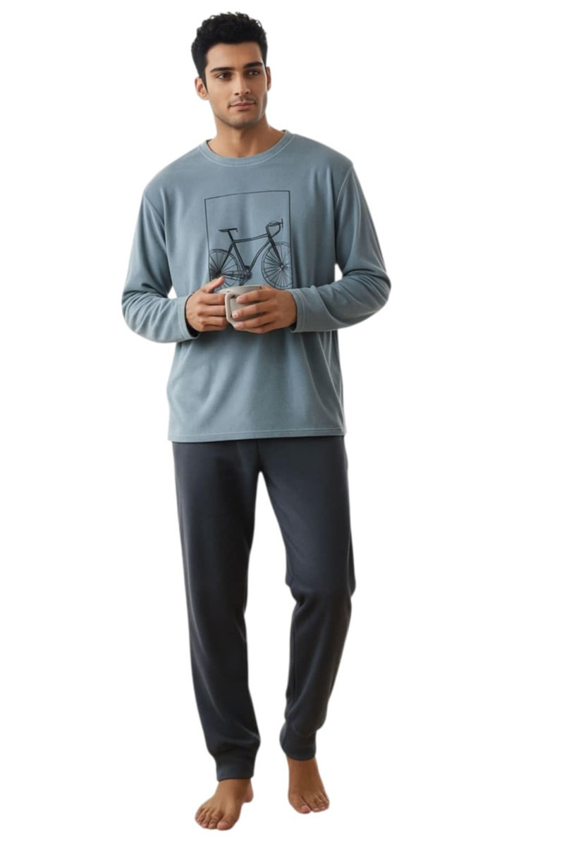 Dark Elephant Βελούδινη Ελαστική Ανδρική Πιτζάμα Γαλάζια/Μπλε.