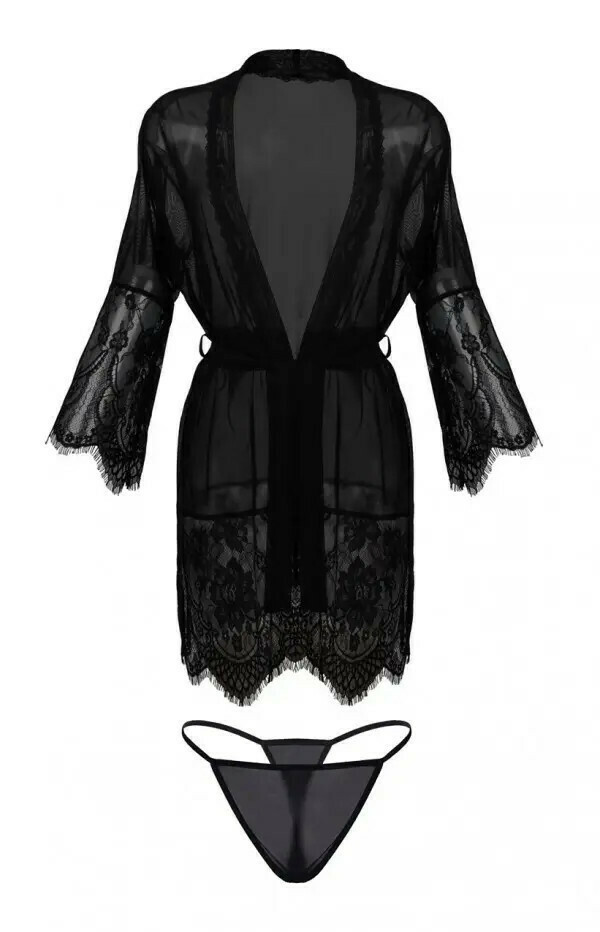 Dkaren μαύρη see through ρόμπα με δαντέλα & string.
