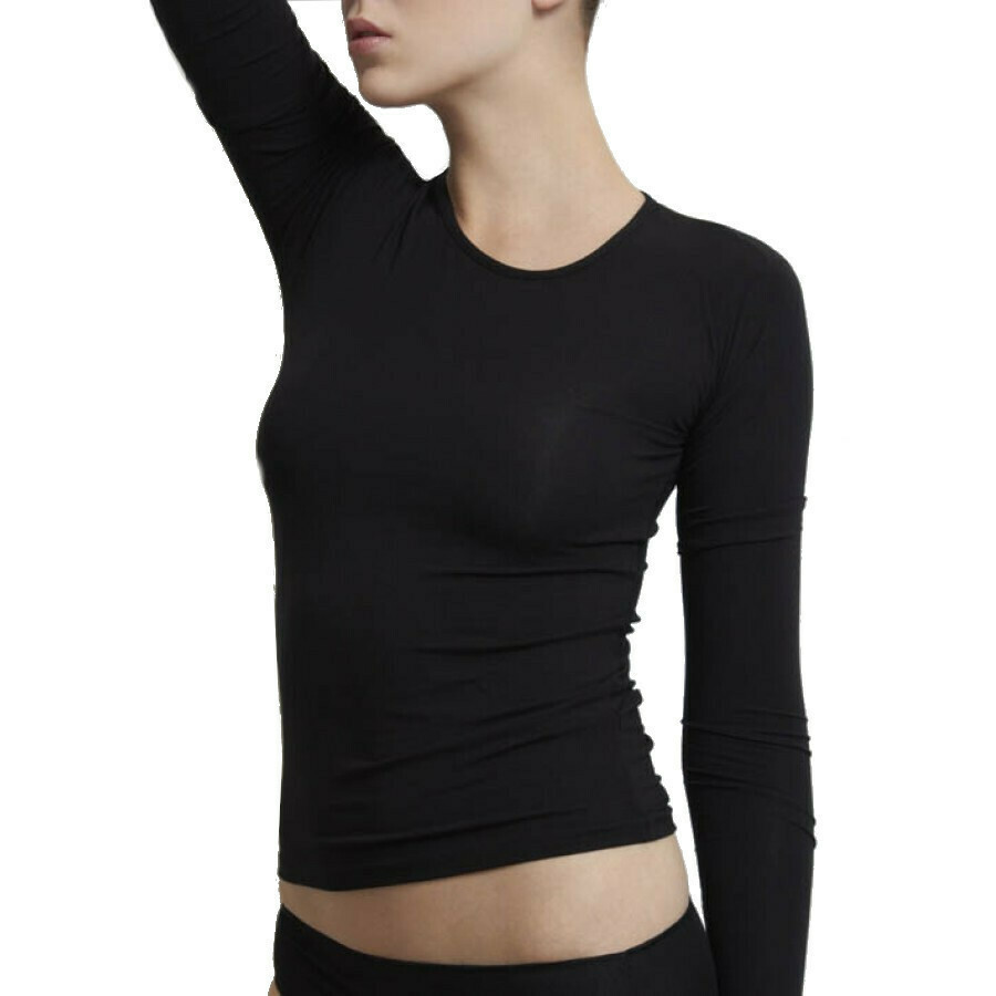 Dreams μαύρο μακρυμάνικο γυναικείο φανελάκι με κλειστή λαιμόκοψη.