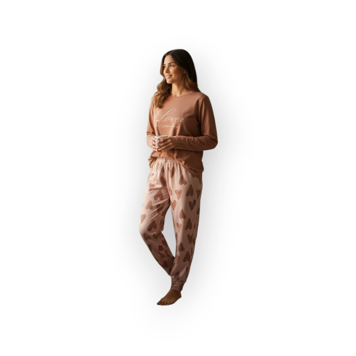 Elite Εκάι/Σομόν Γυναικεία Βαμβακερή Πιτζάμα Με Καρδιές.