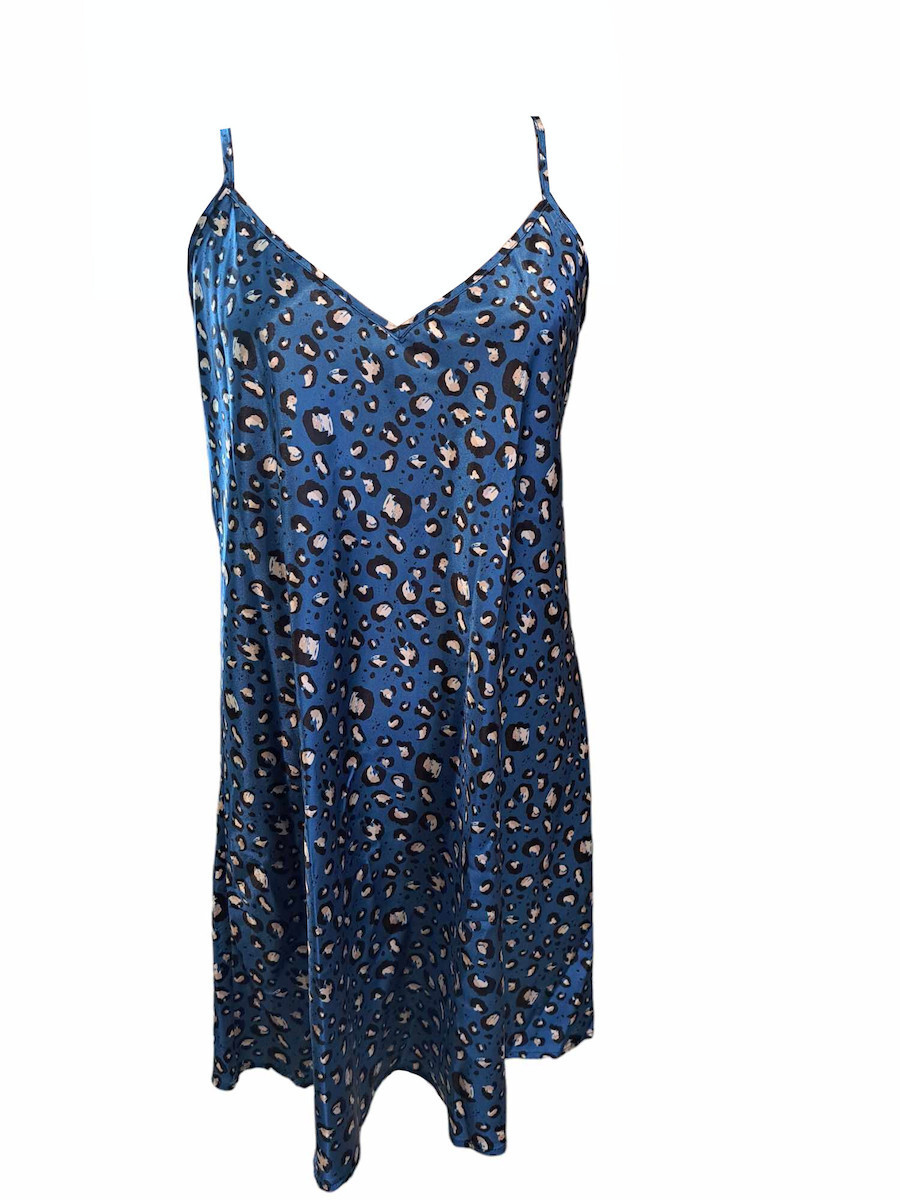 Elite Form Μπλε Σατέν Νυχτικό Λεοπάρ.