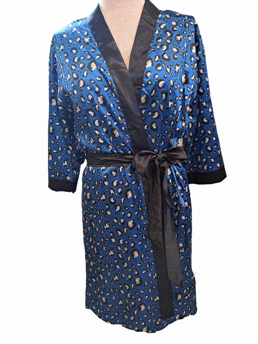 Elite Form Μπλε Σατέν Ρόμπα Σταυρωτή Λεοπάρ.