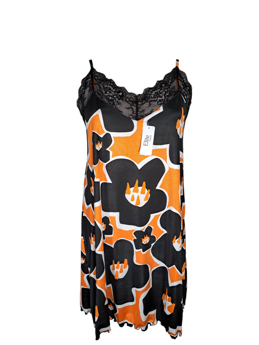 Elite Μαύρο Εμπριμέ Νυχτικό Με Ραντάκι.