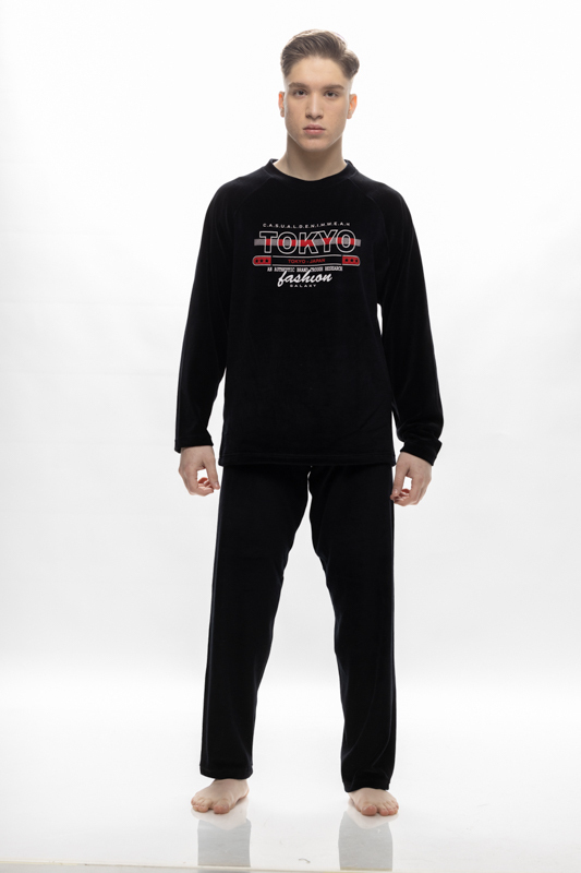 Galaxy Χειμερινή Ανδρική Πιτζάμα Βελουτέ Μαύρο 807-24