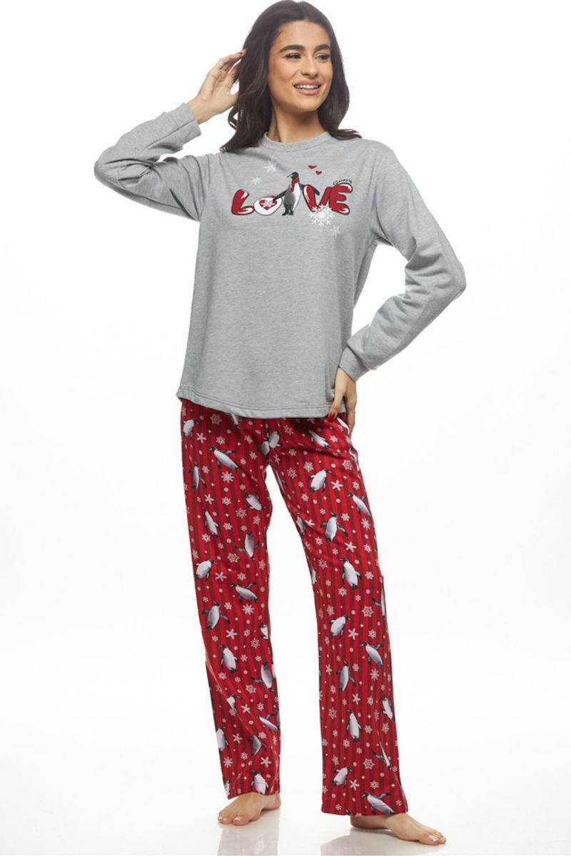 Galaxy Φούτερ Βαμβακερή Γυναικεία Πιτζάμα Γκρι/Κόκκινη.