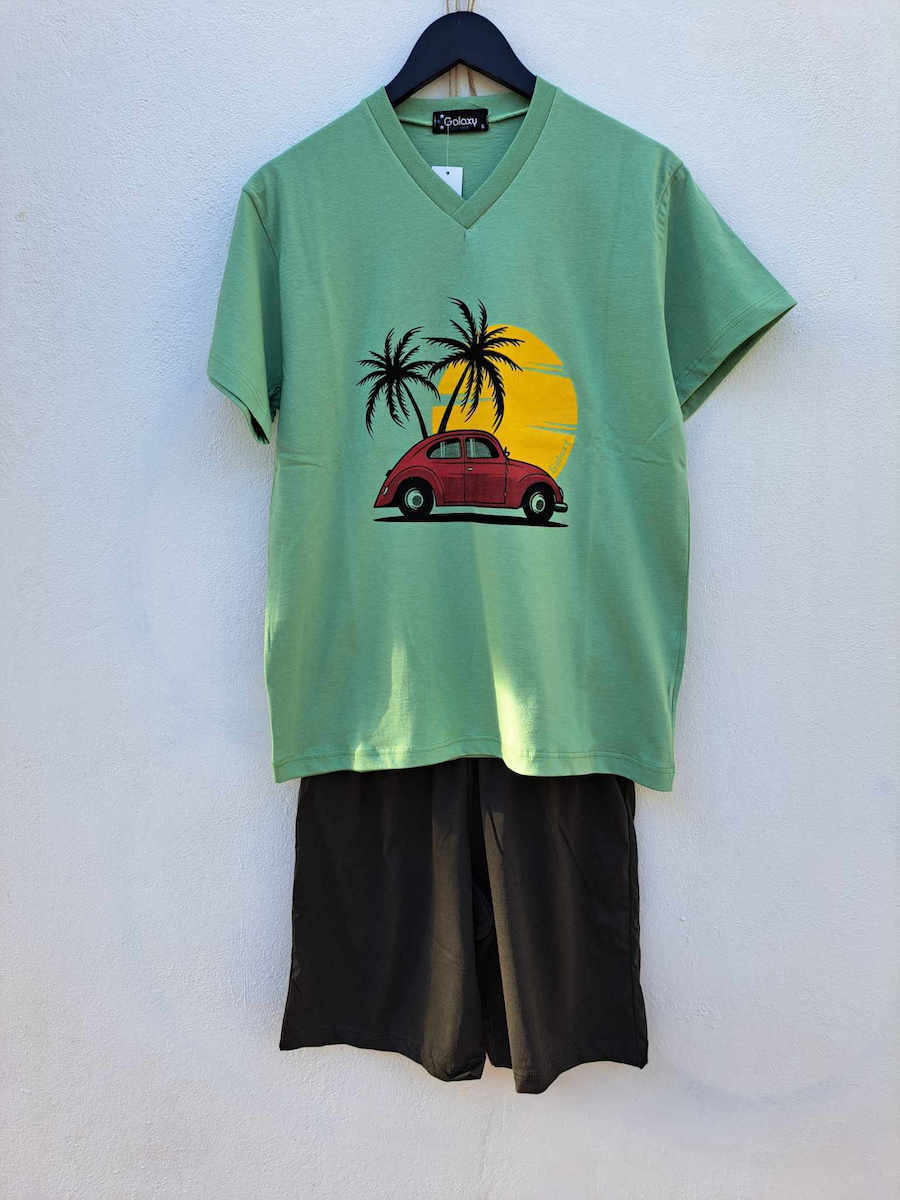 Galaxy Βαμβακερή Ανδρική Πιτζάμα Πράσινη/Χακί.