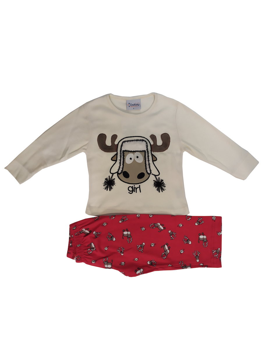 Galaxy βαμβακερή εκρού/κόκκινη εμπριμέ παιδική πιτζάμα "girl".
