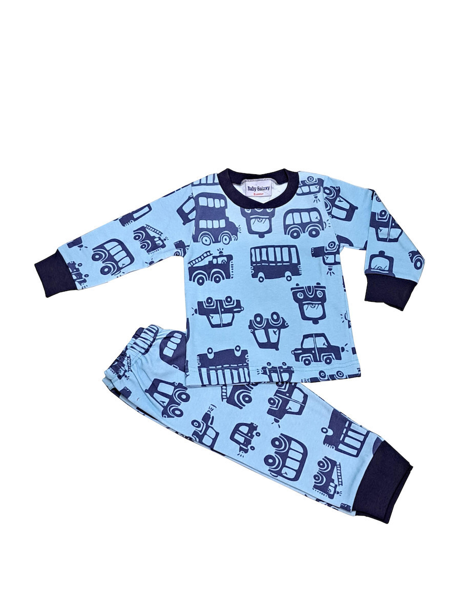 Galaxy βαμβακερή γαλάζια εμπριμέ βρεφική πιτζάμα.