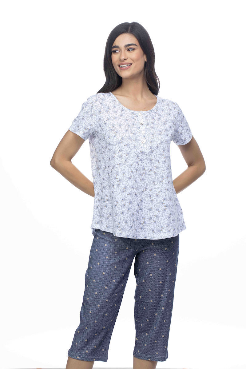 Galaxy Βαμβακερή λευκή/μπλε γυναικεία πιτζάμα.