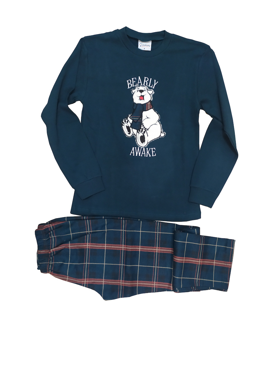 Galaxy βαμβακερή παιδική πιτζάμα κυπαρισί/καρό.