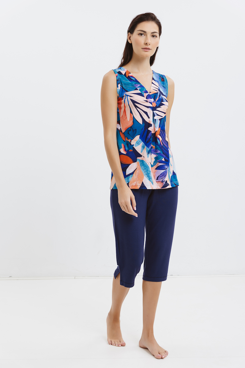 Giota Βαμβακερή Μπλε Αμάνικη Πιτζάμα Εμπριμέ Με Κάπρι.