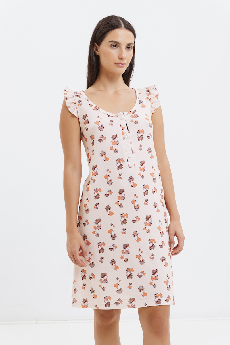 Giota Βαμβακερό Σομόν Αμάνικο Νυχτικό.