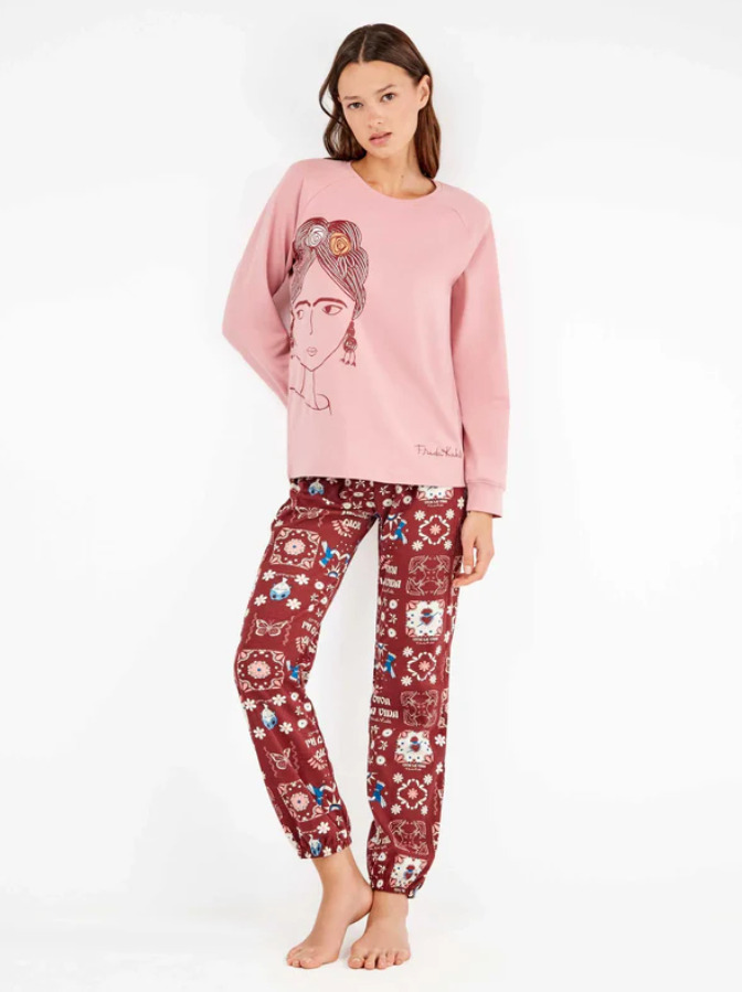 Gisela Ροζ/Μπορντό Γυναικεία Πιτζάμα Frida Kahlo.