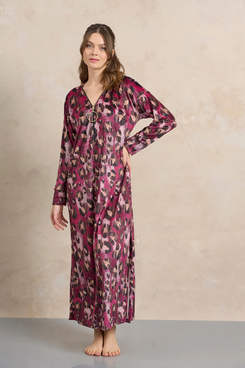 Jeannette Φορεμα Μάξι Φερμουάρ Βελούδο Λεοπάρ Μπορντό (7943)
