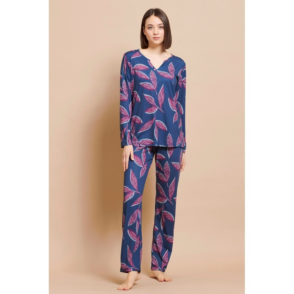 Jeannette Lingerie Χειμερινό Γυναικείο Σετ Πιτζάμας Μπλε 7736