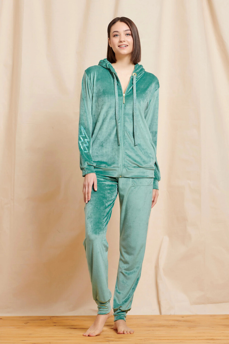 Jeannette βεραμάν βελούδινη φόρμα με κουκούλα & φερμουάρ.