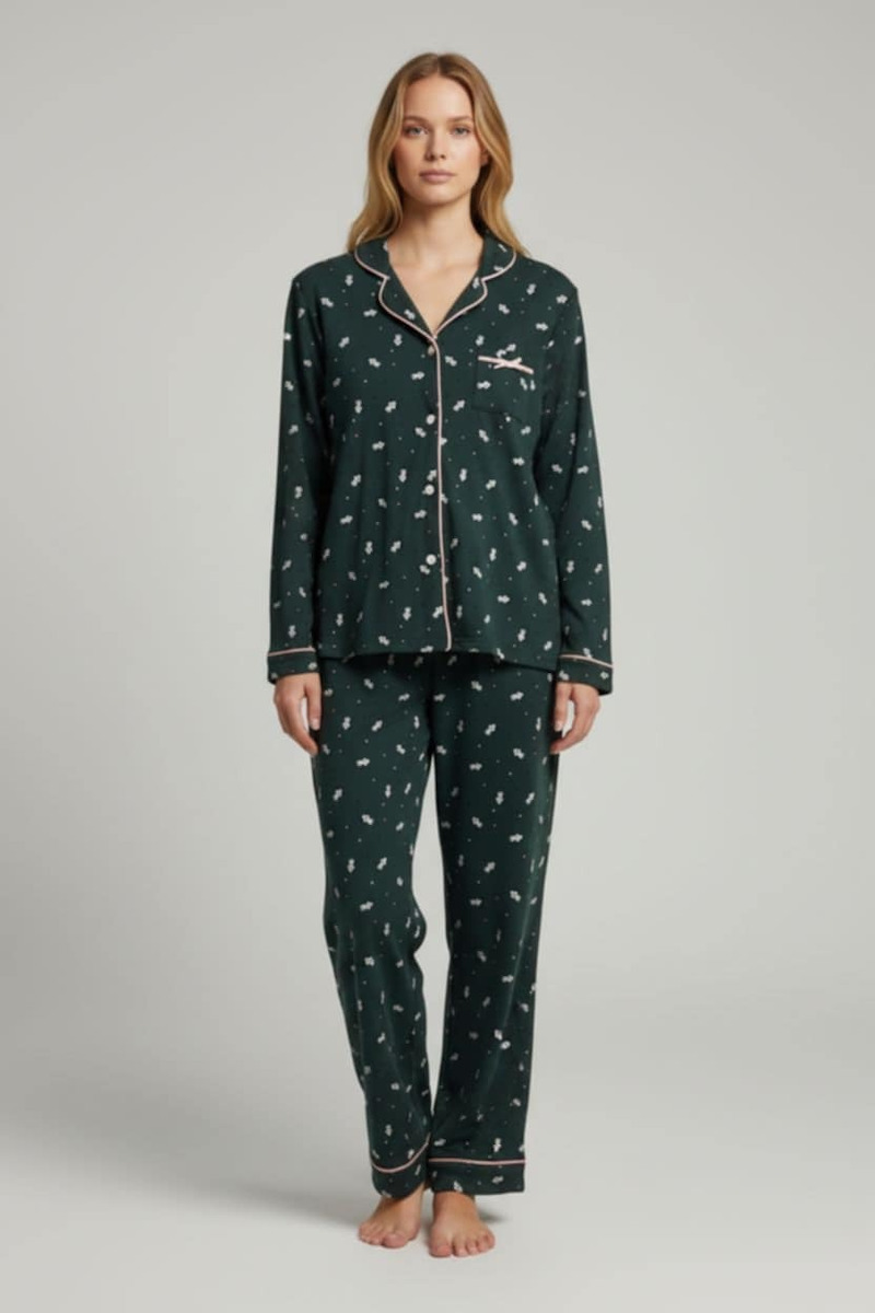 Little Unicorn Κυπαρισσί Φούτερ Κουμπωτή Εμπριμέ Γυναικεία Πιτζάμα.
