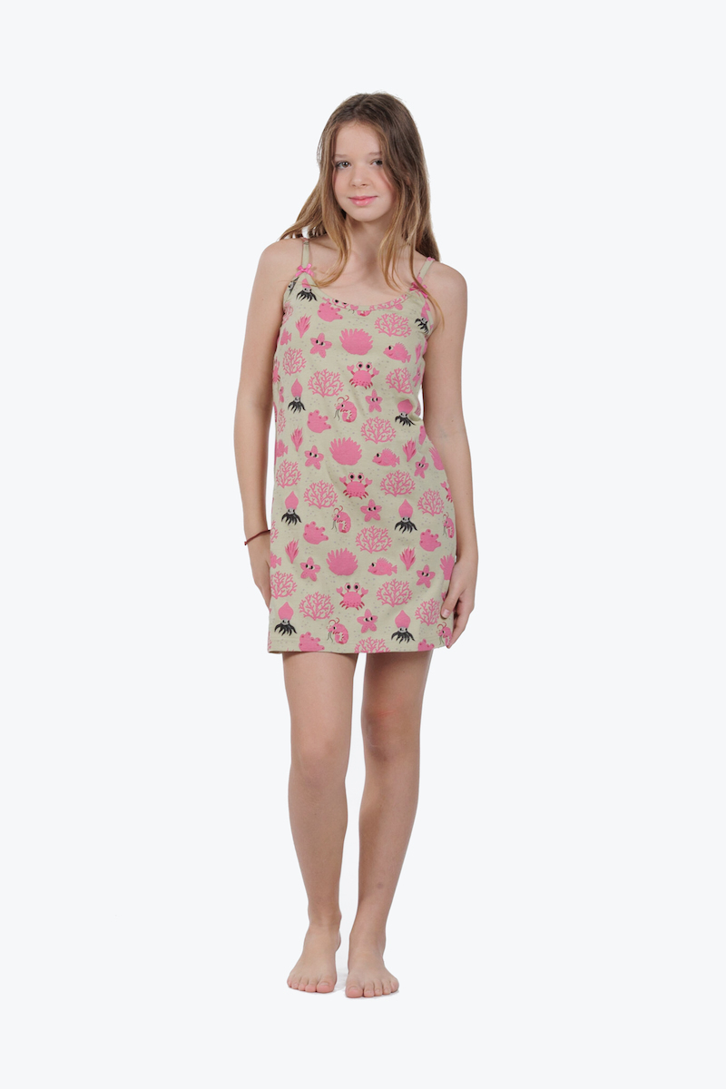 Mei εμπριμέ βαμβακερό λαδί παιδικό νυχτικό με ράντα.