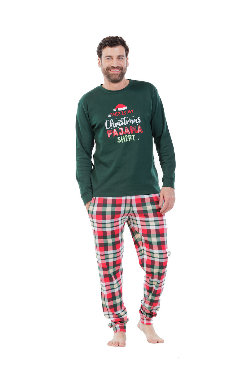 Mei Βαμβακερές Ανδρικές Πιτζάμες Καρό/Πράσινο Σκούρο.