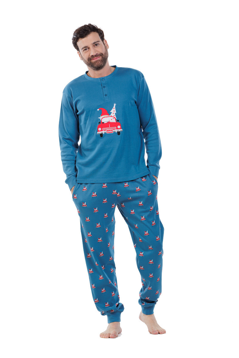 Mei Βαμβακερές Ανδρικές Πιτζάμες Πετρόλ.