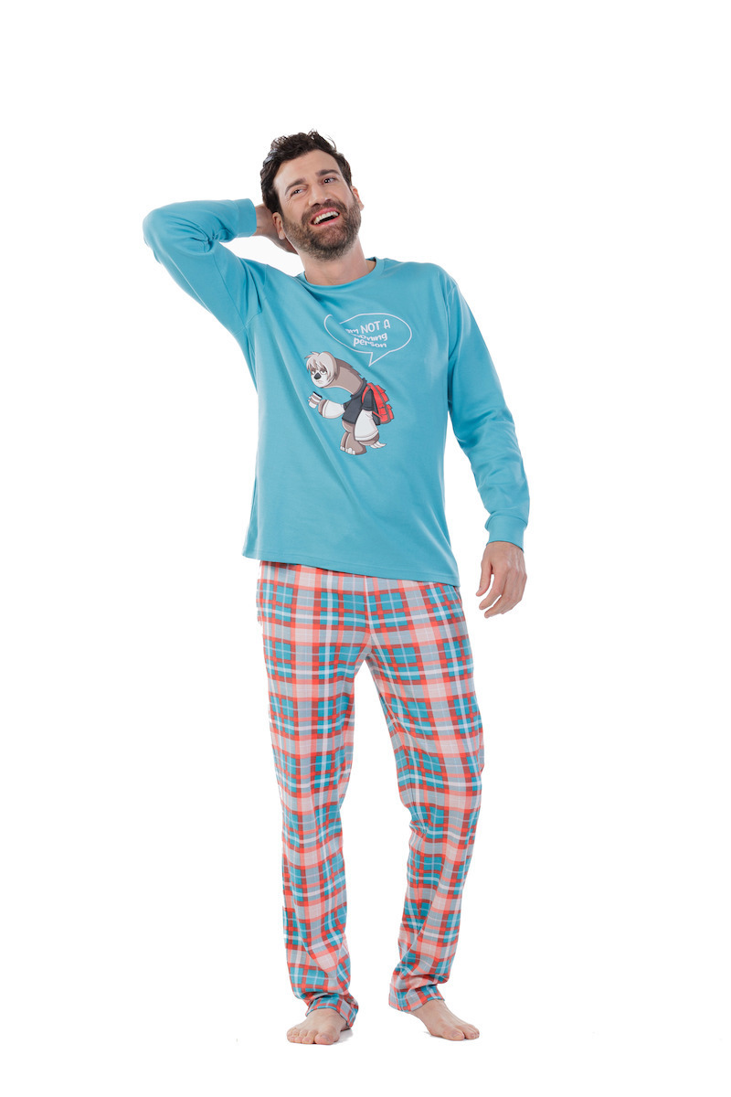 Mei Βαμβακερές Ανδρικές Πιτζάμες Τιρκουάζ/Καρό.