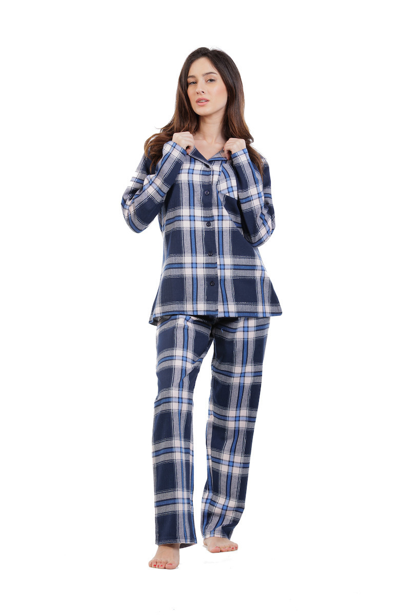 Mei Βαμβακερές Γυναικείες Πιτζάμες Μπλε Καρό Κουμπωτές.