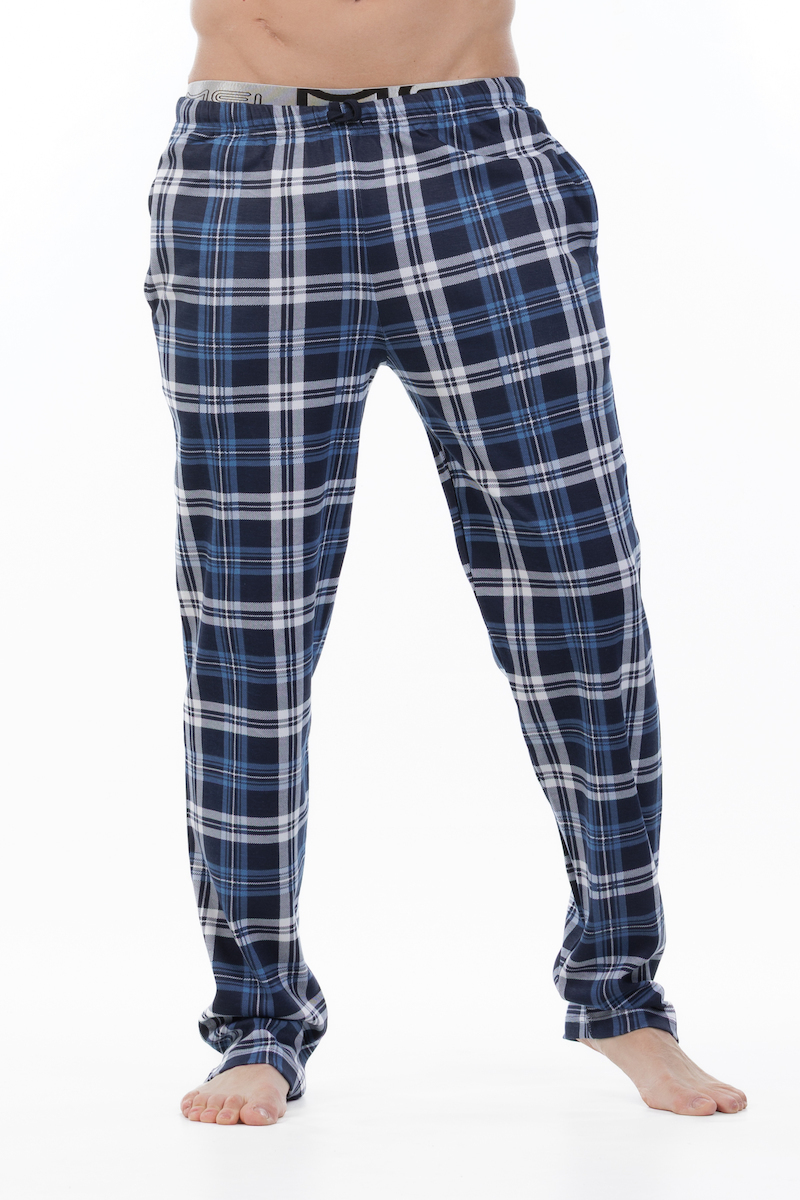 Mei Βαμβακερό Ανδρικό Παντελόνι Πιτζάμας Μπλε Καρό.